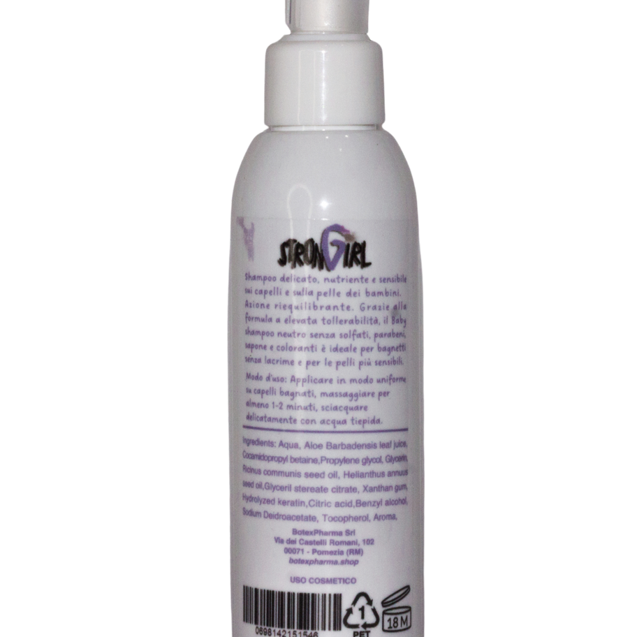 Shampoo delicato, nutriente e sensibile sui capelli e sulla pelle dei bambini. Azione riequilibrante. Grazie alla formula a elevata tollerabilità, il Baby shampoo neutro senza solfati, parabeni, sapone e coloranti è ideale per bagnetti senza lacrime e per le pelli più sensibili. 150 ml. Made in Italy